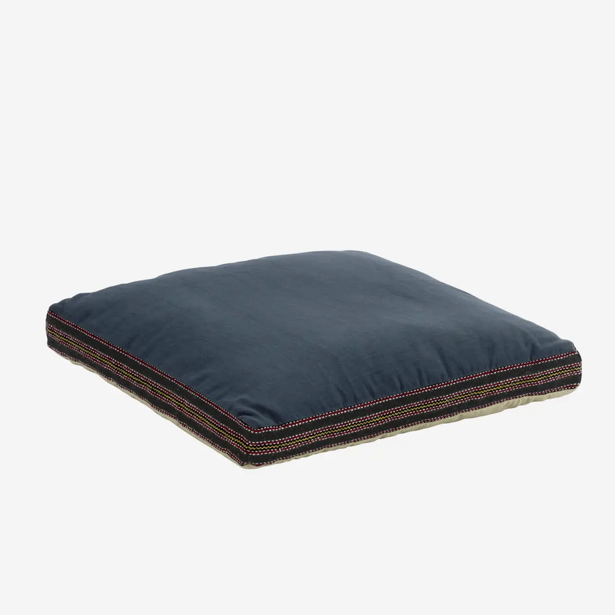 Bawełniana poduszka do siedzenia w kolorach niebieskim, piaskowym i czarnym to wygodny i dekoracyjny element do wnętrz i na taras. Wykonana z wysokiej jakości bawełny z miękkim wypełnieniem z poliestru, zapewnia komfort podczas siedzenia na krześle, podłodze czy na zewnątrz.
